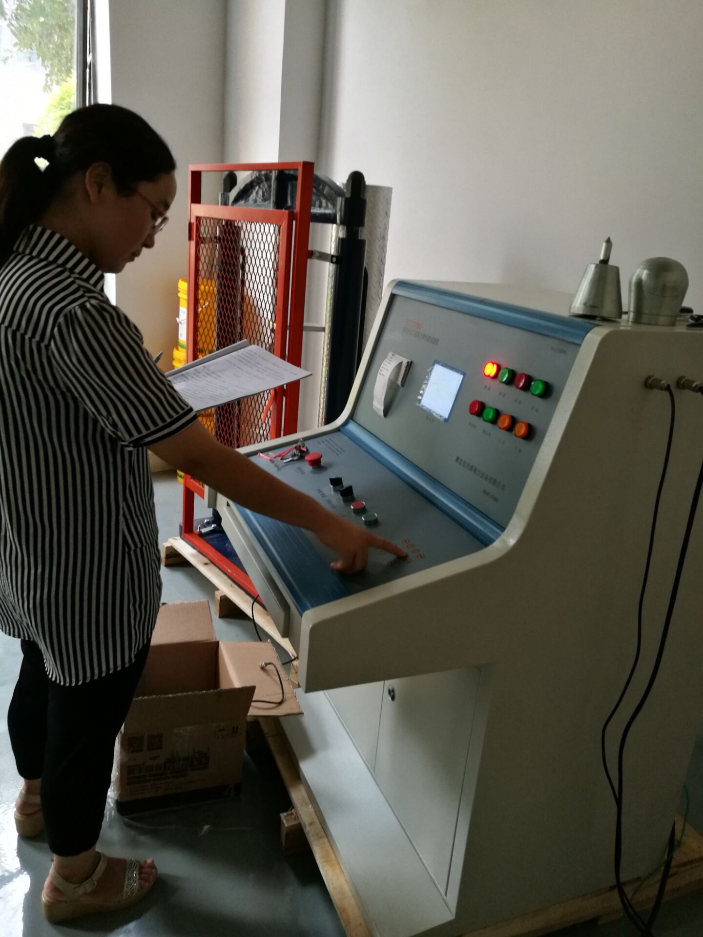此次培訓(xùn)的重點設(shè)備是YTC6170電力安全工具器具力學(xué)性能測試機(jī),我公司研制的電子測力機(jī)(電力安全工器具力學(xué)性能試驗機(jī)),符合國家電力公司《電力安全工器具預(yù)防性試驗規(guī)程》要求,按《規(guī)程》完成各種預(yù)防性力學(xué)性能試驗。本機(jī)由測試顯示和加力設(shè)備兩部分組成(如需測安全帽配安全帽試驗臺) 測試顯示部分由拉壓力傳感器、控制鍵盤、液晶顯示屏、微型打印機(jī)、手動按扭等組成。鍵盤使用薄膜輕觸鍵,使用手感好,液晶顯示為中文菜單式,操作人員可根據(jù)被試對象選擇相應(yīng)名稱菜單,當(dāng)需要對測試結(jié)果打印時,可打印測試報告,便于備案檢查。本機(jī)設(shè)置兩個傳感器接口,傳感器3KN、100KN傳感器為測試安全工具之用。安全帽測試為測試安全帽專用。兩只傳感器既可單獨使用,也可同時使用。能滿足不同使用場所環(huán)境的要求和工作要求,性能穩(wěn)定,測試結(jié)果準(zhǔn)確。