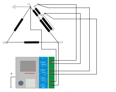 1.測試儀在三角形接法變壓器上進(jìn)行CT測試的接線方式如圖所示。