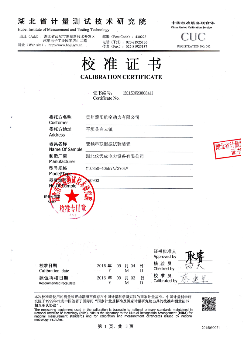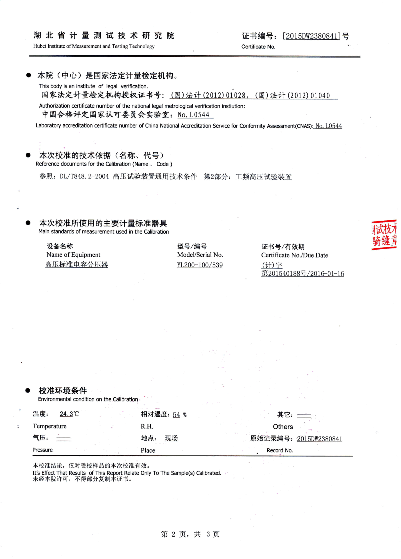 | 110kV及以下電壓等級(jí)電氣設(shè)備 | 30-300Hz | ≤265kV | 16kV | |||||||