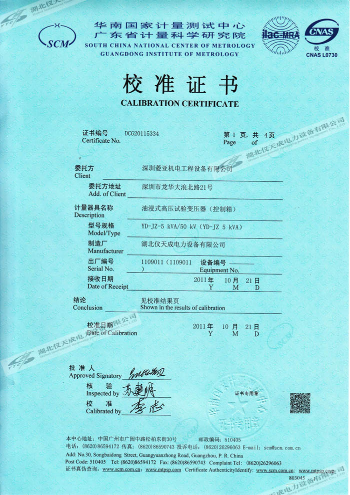 轉(zhuǎn)載:"YD-JZ-5kVA/50kV油浸式高壓試驗(yàn)變壓器的資質(zhì)證書" 請注明來源于儀天成電力。 更多技術(shù)問題請致電儀天成電力客戶服務(wù):027-87876585,技術(shù)部專線:027-87876585,在線客服:719388481